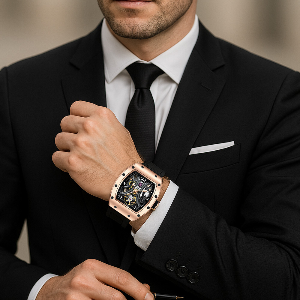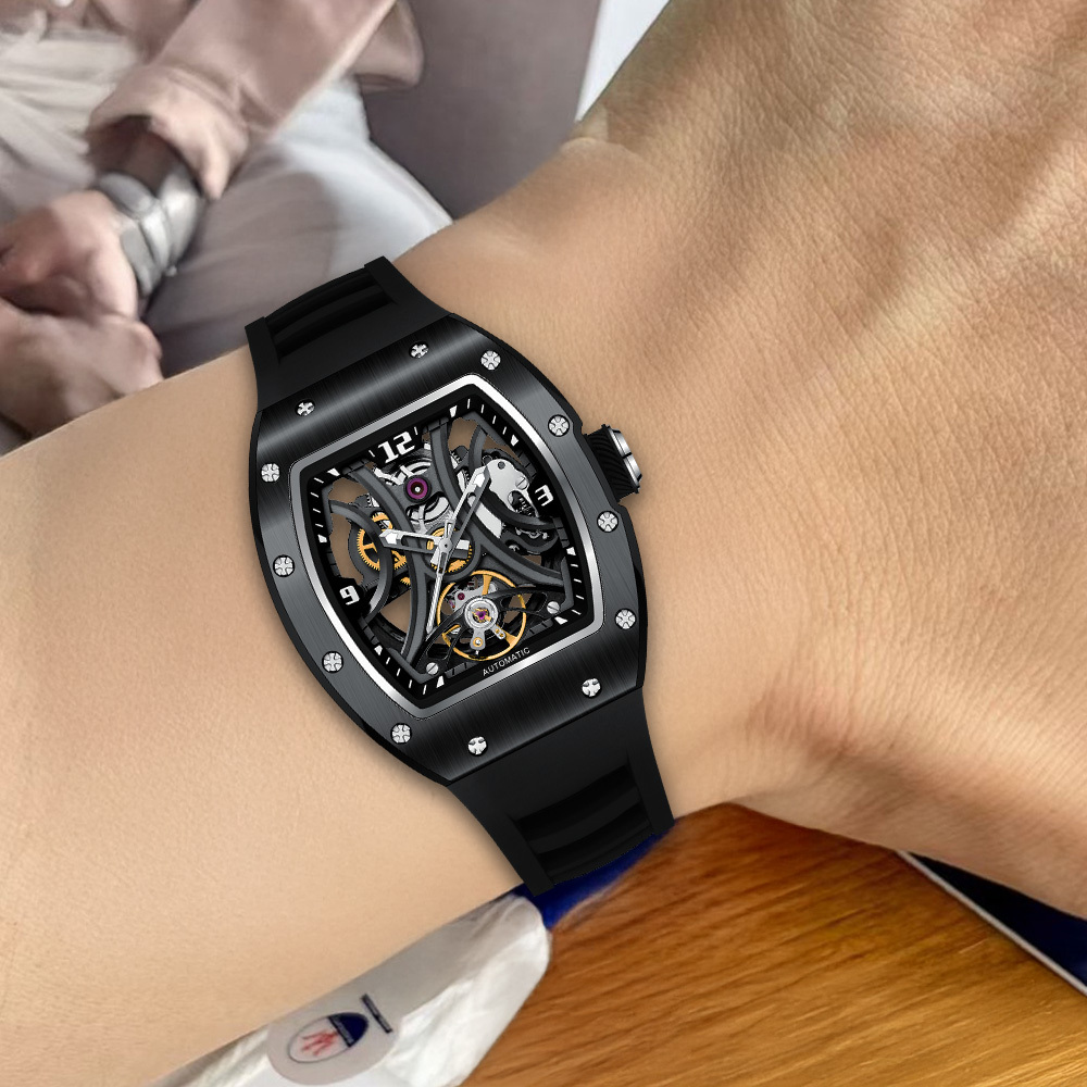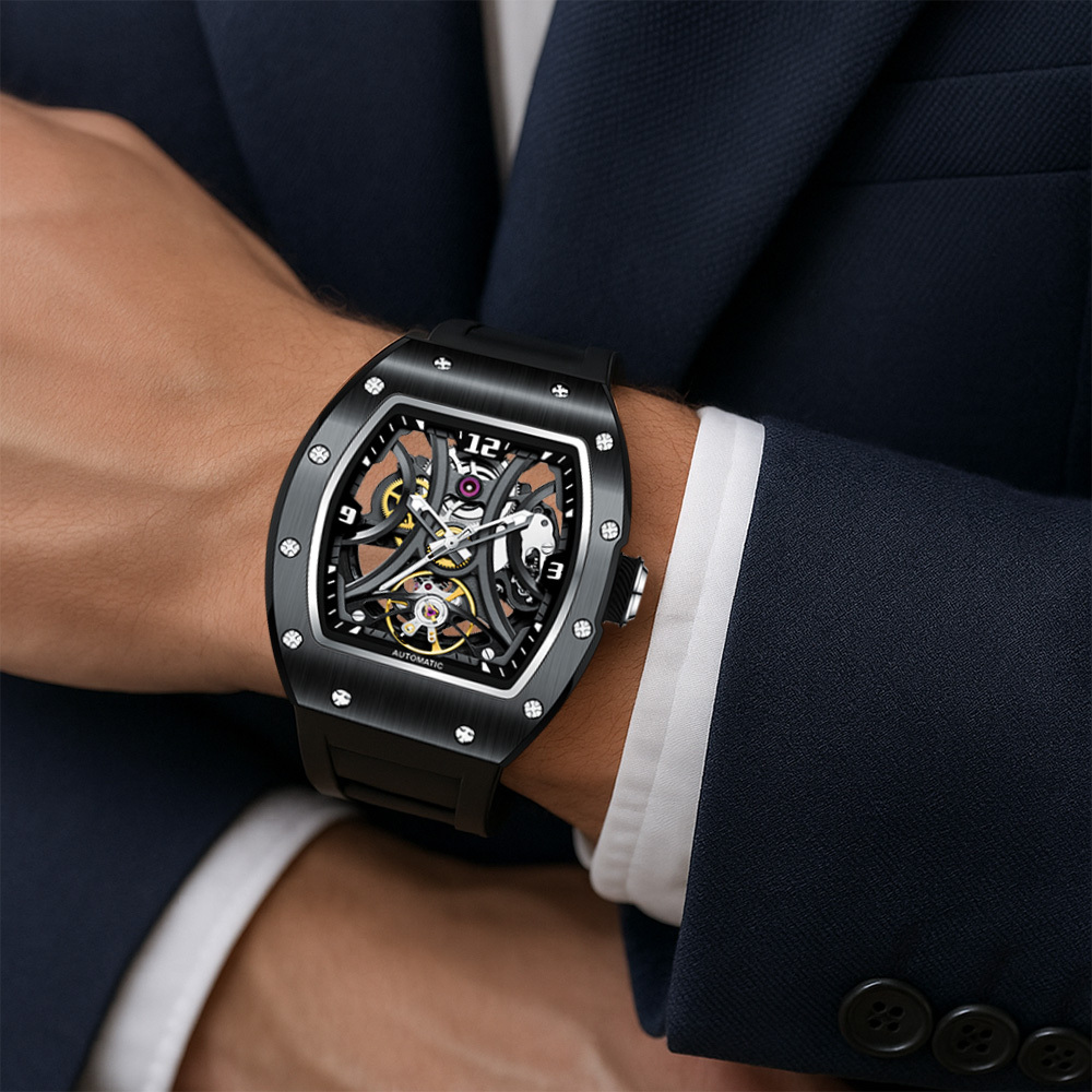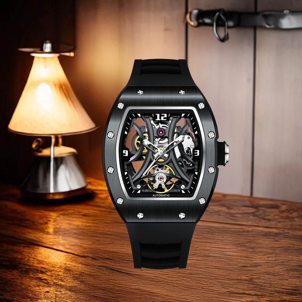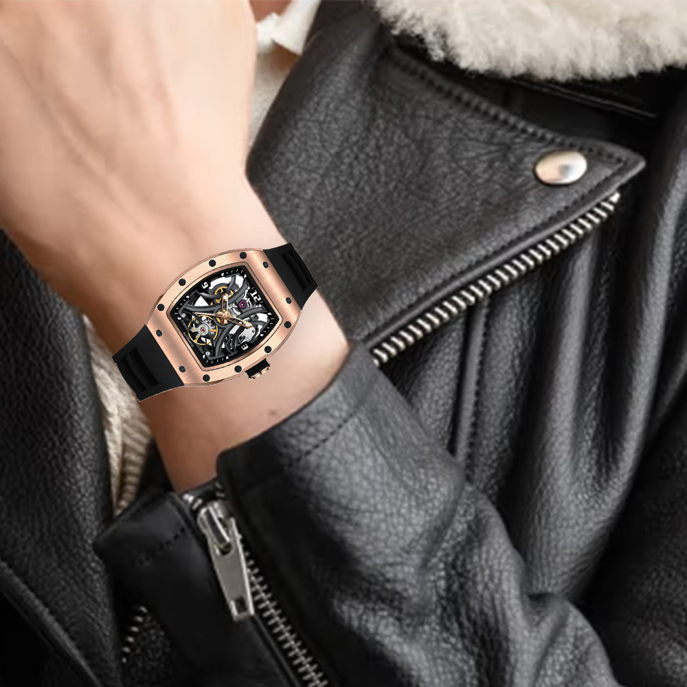 【Free Focus】JC-9-190G-11 酒桶款 潮流 雙面鏤空 夜光指針 機械 手錶